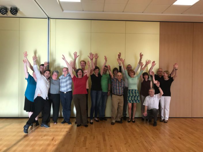 SAMBA war das brasilianische Thema beimWorkshop des TSC Schwarz-Gold. Die Teilnehmer waren begeistert, wie das Foto mit dem Trainer Berk zeigt.