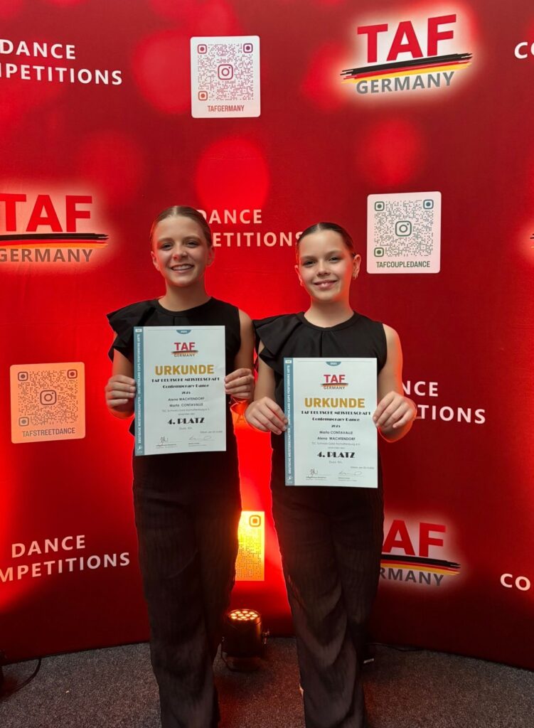 Am 03.10. und 4.10.2025 fanden für unsere Schwarz-Gold Kinder die Deutschen Meisterschaften in Döbeln (TAF Germany Deutsche Meisterschaft – Contemporary Dance) und Celle (DTV – Jazz Modern Contemporary) statt.